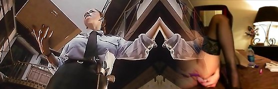 Slutty blonde police girl watches porn and faps at work