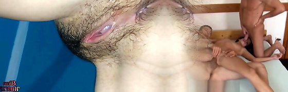 My husband pounding my hairy pussy in a missionary position while we make our first intercourse flick