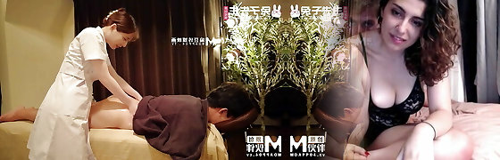 Massage Rooms Asian cute Amateur Teen With big tits handjob on big cock and Get Hard fuck