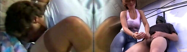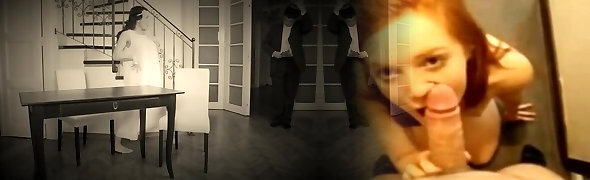Hot redhead and blonde milky milfs give double blowjob
