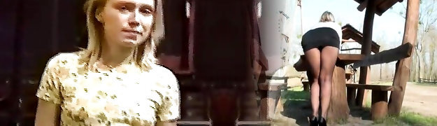 A slim blonde slut from Germany gets smashed by three hard shaft dudes