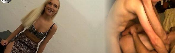 Blonde teen from France gets smashed by two hard sausages