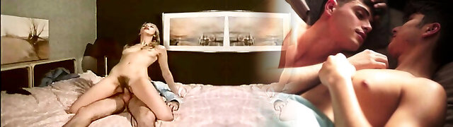 Super sexy German teen femmes sharing a loaded cock in the bedroom
